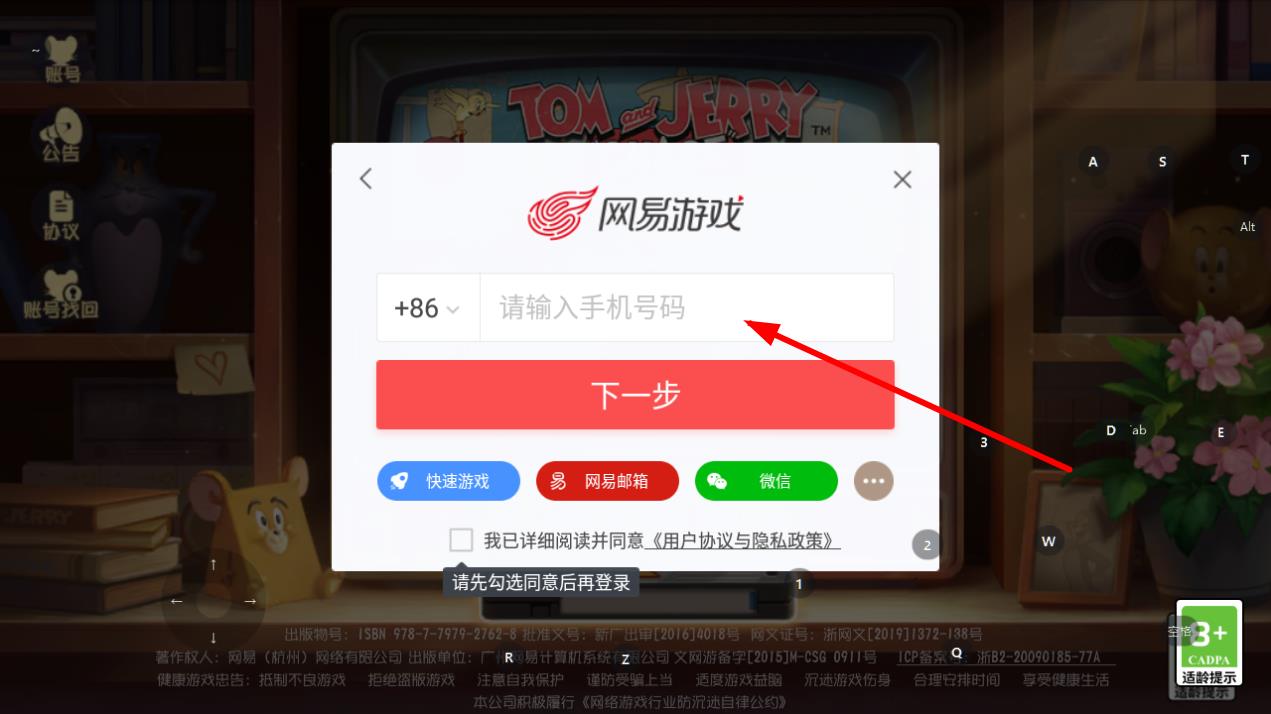 3、進入新的登錄頁面后,可以選擇輸入新的手機號碼,通過驗證碼登錄,也能點擊下方的快速游、網(wǎng)易郵箱、微信等其他登錄方式圖標,完成賬號切換登錄。