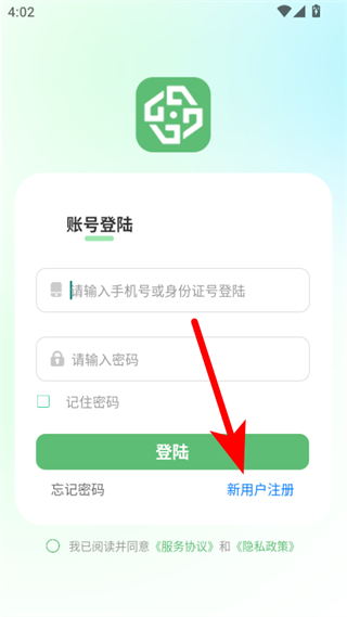 2、在賬號登錄頁面,點擊新用戶注冊選項,進入注冊信息填寫頁面。