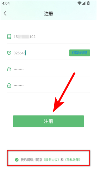 4、勾選我已閱讀并同意服務協(xié)議和隱私政策后,點擊注冊按鈕,即可完成佑安寶賬號注冊。