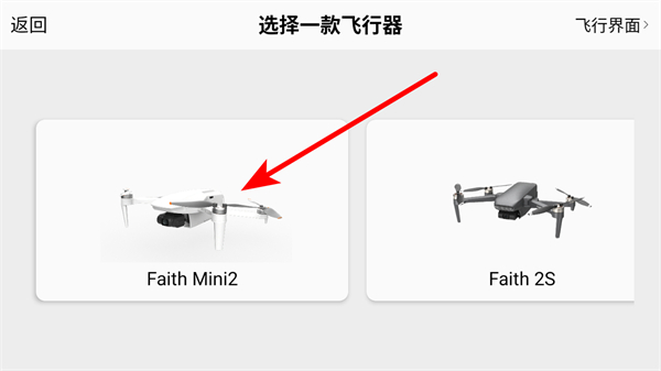 1.打開C-Fly2無人機應用,選擇要連接的飛行器型號,如Faith Mini2。