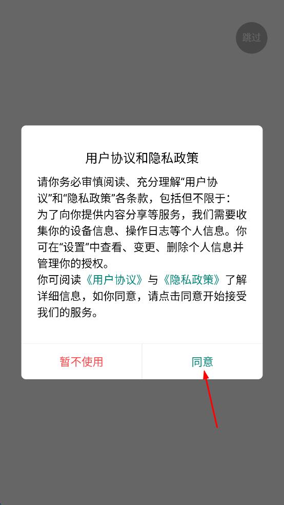 1、打開樂山軟件,會(huì)彈出用戶協(xié)議和隱私政策提示框,點(diǎn)擊同意,進(jìn)入軟件主界面。