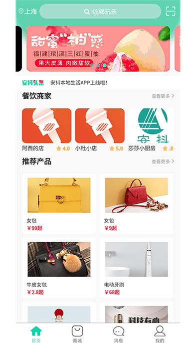 1、安抖本地生活簡(jiǎn)單設(shè)計(jì)的APP界面,讓同城用戶無(wú)論是購(gòu)物還是去看資訊都會(huì)覺(jué)得很方便,購(gòu)買商品更省心;