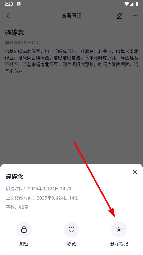 3、在彈出的操作選項(xiàng)中,點(diǎn)擊刪除筆記圖標(biāo)。