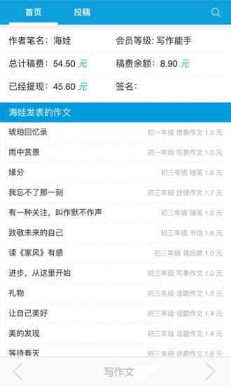 將自己的作文投稿到這個平臺上能夠獲得收益,讓你的知識變成財富;