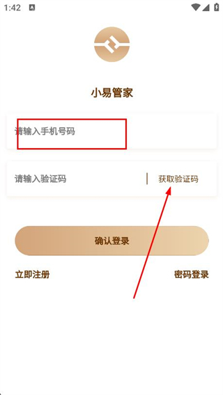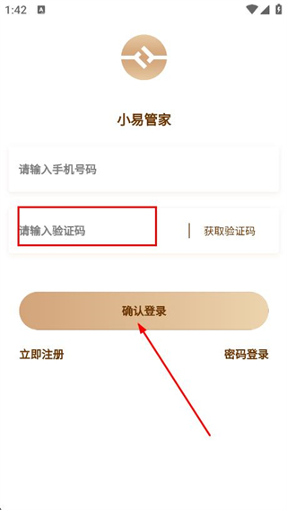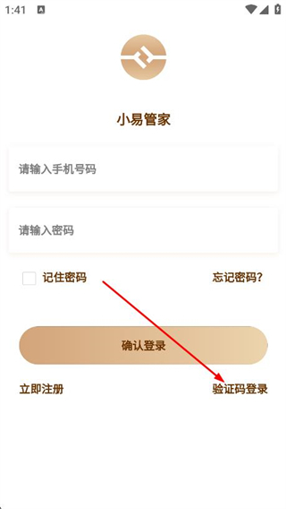 1、打開小易管家APP,在登錄界面點擊驗證碼登錄選項。