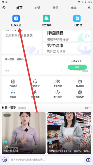 1、在應用首頁面中,通過點擊社保認證按鈕,進入社保頁面。