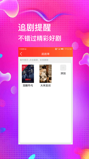 2、智能化追劇導(dǎo)航,自定義添加追劇單,電視劇播出時間提醒,大視頻平臺會員到期提醒