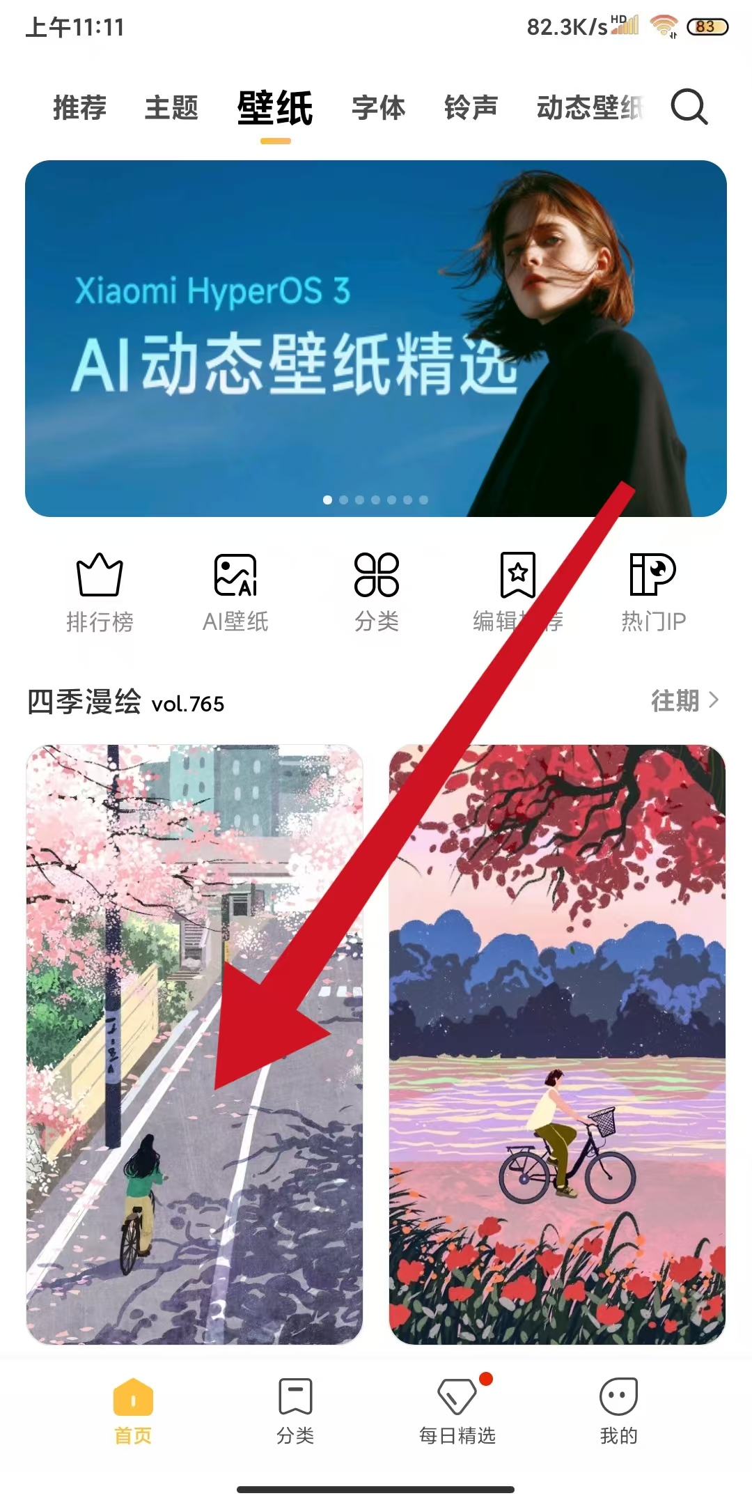 3、在壁紙頁面瀏覽,選擇自己喜歡的壁紙并點擊進入詳情。