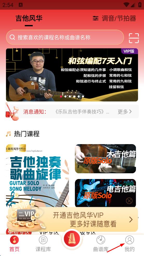 1、打開吉他風華app,進入時點擊右下方我的按鈕。