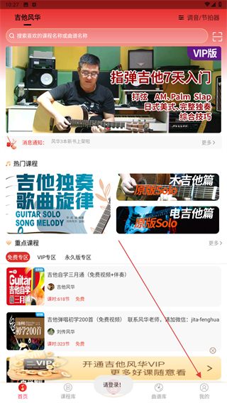 吉他風華這款app提供了一個線上樂器學習平臺,你可以在吉他風華里面學習吉他彈奏,有專業(yè)的老師帶你最快速入門,同時還有各種樂理知識,豐富你的頭腦,吉他風華里面有很多曲譜講解,也非常適合突擊學習,有興趣的話來下載吧。