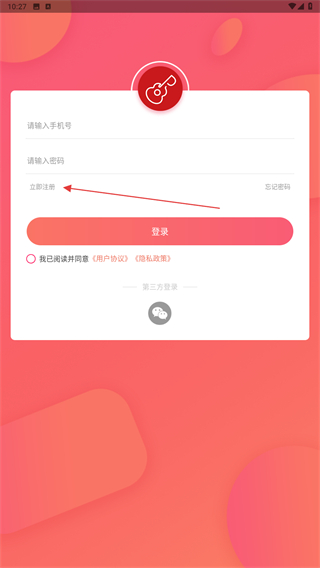 2、進入登錄的界面內,點擊立即注冊的功能按鈕。