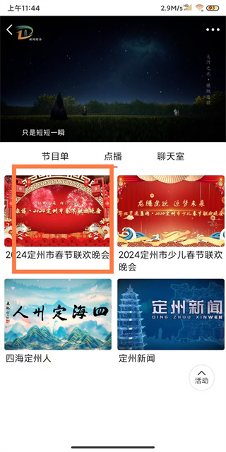 3、在頻道詳情界面,點(diǎn)擊目標(biāo)視頻如2024定州市春節(jié)聯(lián)歡晚會(huì),進(jìn)入視頻播放頁(yè)面。