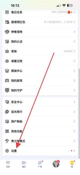 2、在個(gè)人頁(yè)面點(diǎn)擊設(shè)置,進(jìn)入設(shè)置頁(yè)面。
