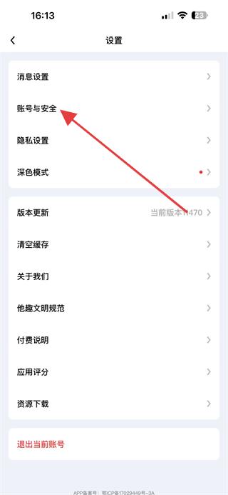 3、在設(shè)置頁(yè)面點(diǎn)擊賬號(hào)與安全,進(jìn)入賬號(hào)與安全頁(yè)面。