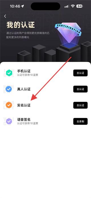 3、在我的認(rèn)證頁(yè)面中找到實(shí)名認(rèn)證選項(xiàng),點(diǎn)擊去認(rèn)證。