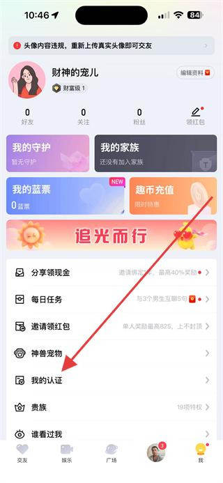 2、在個(gè)人頁(yè)面中找到我的認(rèn)證選項(xiàng)并點(diǎn)擊,進(jìn)入我的認(rèn)證頁(yè)面。