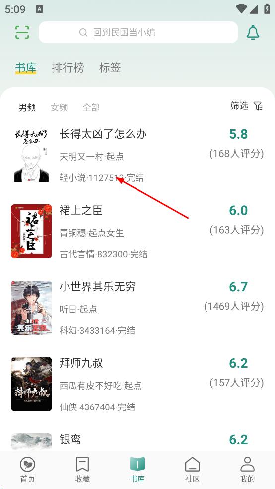 2、在書庫頁面,瀏覽小說列表,找到想要查看的小說,比如“長得太兇了怎么辦”,點(diǎn)擊該小說,進(jìn)入小說詳情頁面。