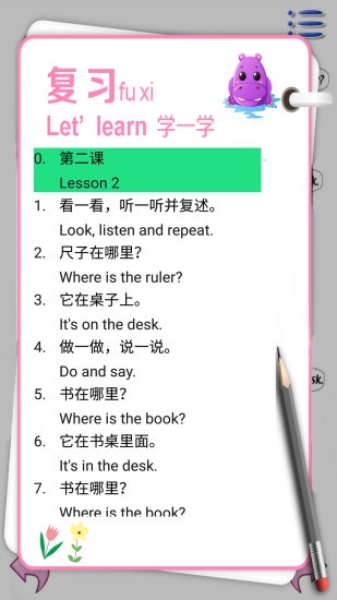 新起點(diǎn)小學(xué)英語一年級下冊點(diǎn)讀版是一款免費(fèi)的英語電子課本app。為學(xué)生們提供了課本點(diǎn)讀、課后習(xí)題講解以及視頻課程內(nèi)容。學(xué)生可以通過本應(yīng)用在線學(xué)習(xí)課本上的知識點(diǎn),輕松背單詞、掌握英語課程知識。歡迎用戶下載使用。