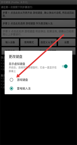 2、在完成步驟1點擊步驟2按鈕后,點擊彈窗中的按鈕選擇游戲鍵盤進行使用。