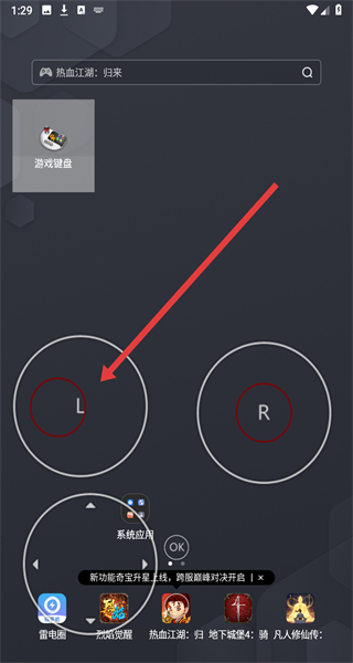 4、返回到桌面后,可以滑動游戲鍵盤進行操作。