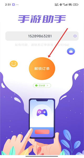 4、返回“手游助手”頁面點(diǎn)擊“解鎖訂單”,完成訂單解鎖流程。