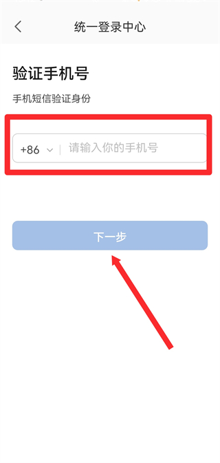 2、在驗證手機號的頁面,我們需要輸入手機號,點擊下一步。