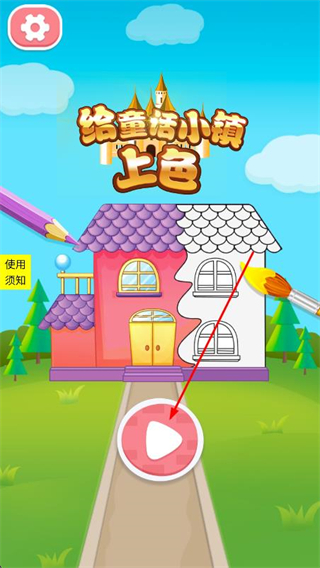 1、打開給童話小鎮(zhèn)上色,點(diǎn)擊界面的播放按鈕進(jìn)入關(guān)卡頁面。