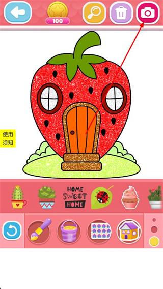 4、上色完成后,找到并點(diǎn)擊右上角相機(jī)圖標(biāo),即可保存作品。