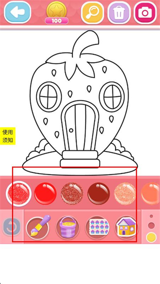 3、在上色界面底部有不同的繪畫工具,點(diǎn)擊圖案進(jìn)行涂色。