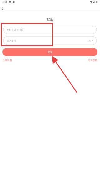 4、進(jìn)入到登錄的頁面內(nèi),點擊登錄的手機號、密碼,再點擊登錄的按鈕即可。