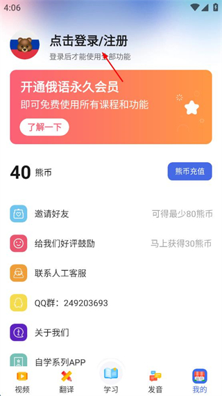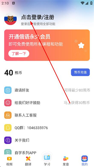 1、打開俄語學(xué)習(xí)app,點(diǎn)擊底部導(dǎo)航欄的我的選項(xiàng)。