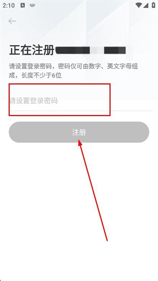 4、設(shè)置密碼,點(diǎn)擊注冊(cè)按鈕,即可完成賬號(hào)注冊(cè)操作。