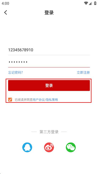 4、勾選已閱讀并同意用戶協(xié)議/隱私策略,點(diǎn)擊登錄。