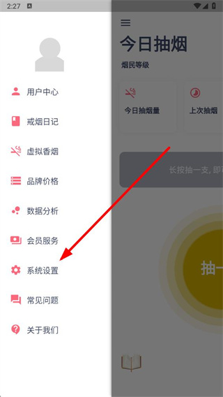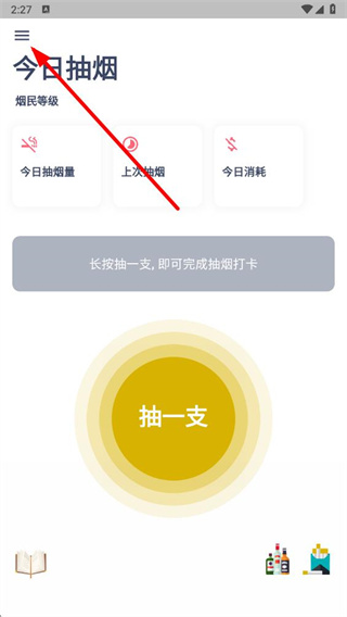 1、打開今日抽煙app,點擊左上角的三條橫線圖標。