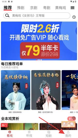 1、打開戲曲梨園app,在首頁內(nèi)點擊右下角我的圖標。