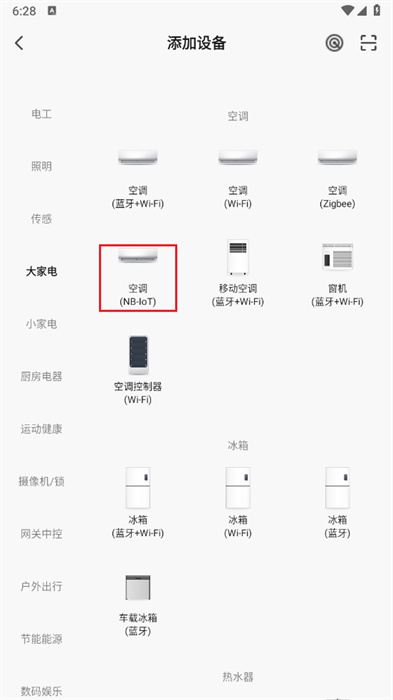 5、此處將會(huì)以【空調(diào)】為例,點(diǎn)擊即可進(jìn)入連接頁(yè)面;