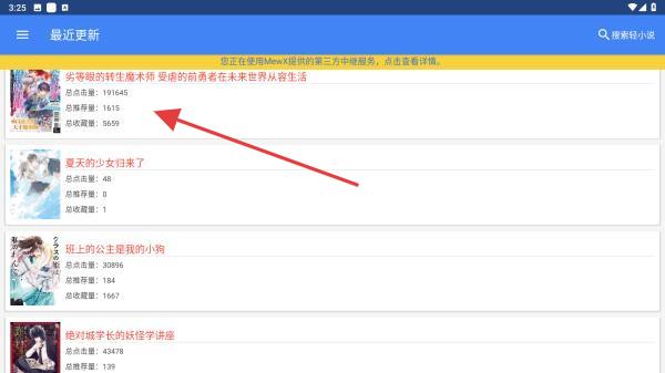 1、在最近更新的列表中,點(diǎn)擊想要閱讀的小說條目。
