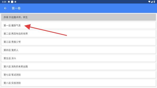 3、在章節(jié)列表中,點(diǎn)擊具體章節(jié)標(biāo)題,即可進(jìn)入閱讀界面。