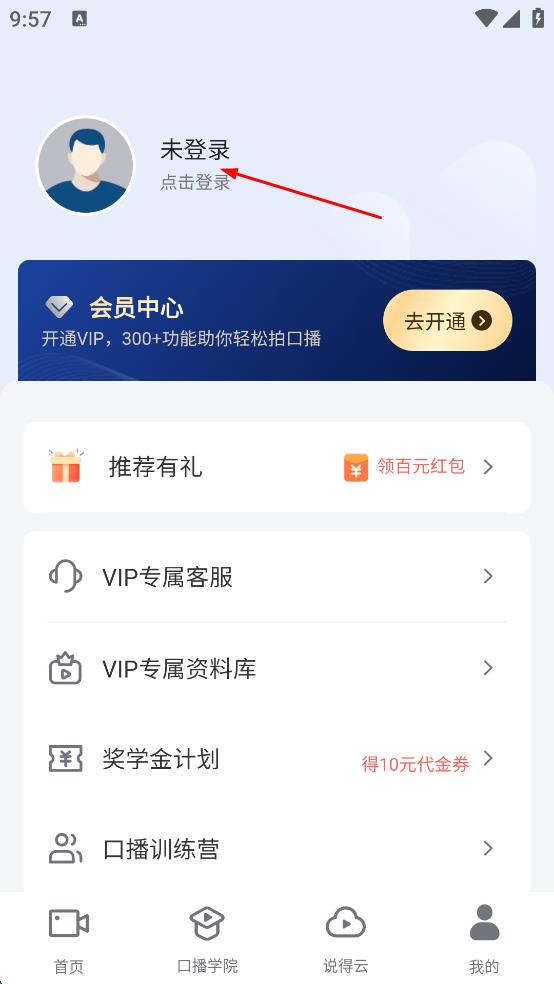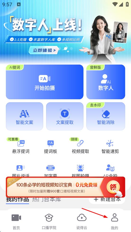 1、打開口播類APP,進(jìn)入首頁(yè)后,點(diǎn)擊頁(yè)面右下角“我的”選項(xiàng),進(jìn)入個(gè)人中心頁(yè)面。