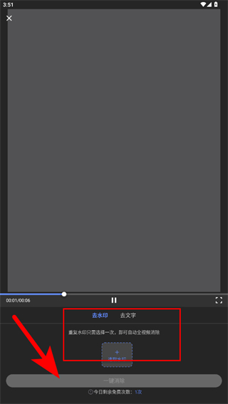 4、在視頻編輯頁(yè)面,選擇去水印選項(xiàng),點(diǎn)擊一鍵消除,完成水印消除操作。