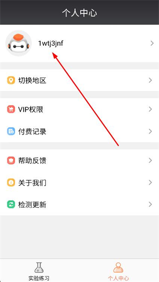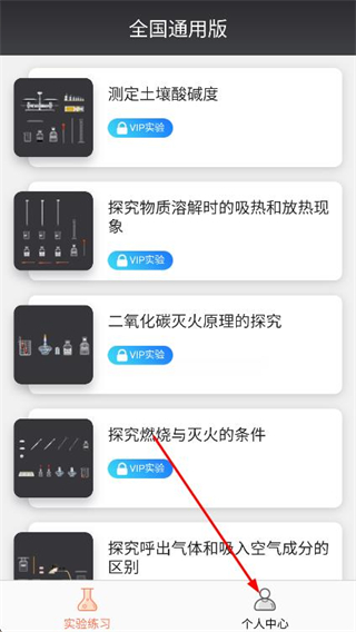 1、打開化學(xué)實驗加試,點擊底部導(dǎo)航欄中的個人中心選項。