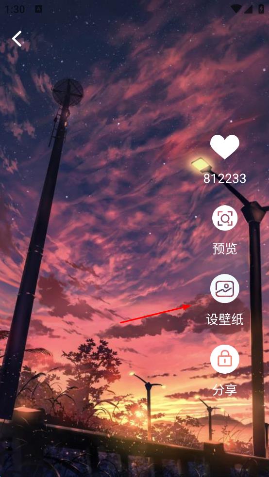 3、在壁紙?jiān)斍轫?yè),點(diǎn)擊“設(shè)壁紙”選項(xiàng),按照提示完成操作即可設(shè)置為壁紙。