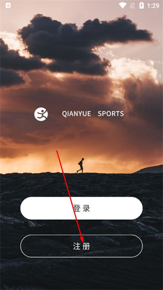 2、在APP啟動(dòng)頁(yè)面點(diǎn)擊注冊(cè),進(jìn)入注冊(cè)頁(yè)面。