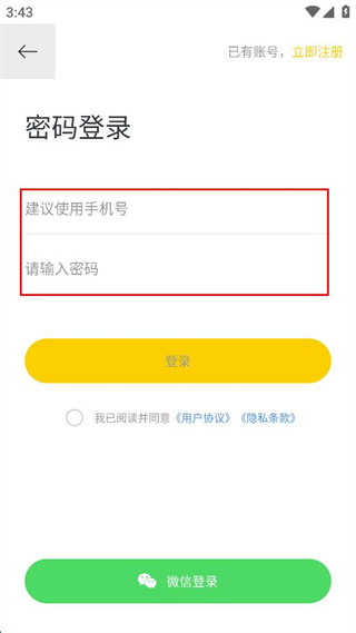 3、在登錄頁(yè)面,輸入手機(jī)號(hào),再輸入密碼。