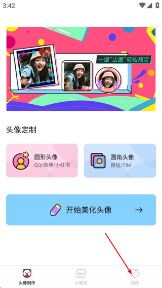 1、打開(kāi)頭像美化APP,點(diǎn)擊底部我的選項(xiàng)進(jìn)入個(gè)人頁(yè)面。