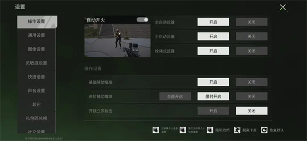 一鍵開鏡設(shè)置是開火時(shí)自動(dòng)開鏡,減少玩家先開鏡后開火的操作,多指玩家使用這一設(shè)置配合手速可以做到在戰(zhàn)局內(nèi)操作靈活流暢,射擊快速精準(zhǔn)。如果你不習(xí)慣射擊時(shí)自動(dòng)開鏡,就關(guān)掉這一選項(xiàng)。