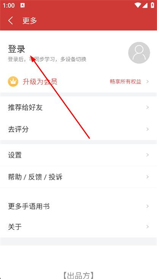 2、在更多頁面中,找到并點(diǎn)擊上方的登錄選項(xiàng)。