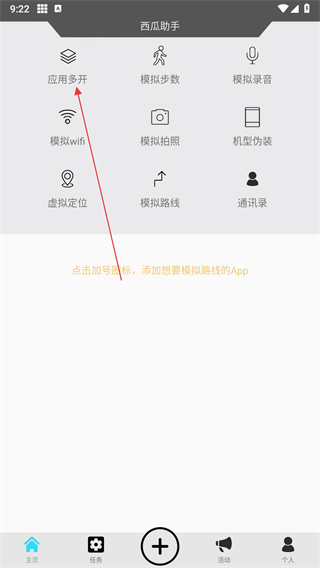 1、打開西瓜助手應用,找到并點擊應用多開選項,進入應用多開功能板塊。
