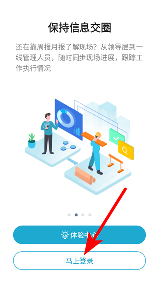 1、打開智建云工程管理APP,點(diǎn)擊馬上登錄,進(jìn)入登錄頁面。