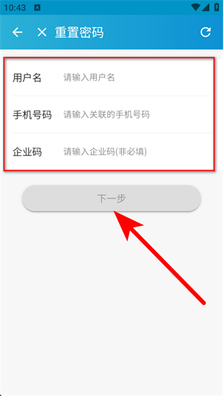 3、在頁面輸入用戶名等信息后,點(diǎn)擊下一步,按照提示完成密碼重置操作。